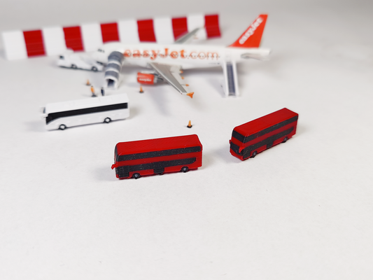 6x Double Deck Buses London Aircraft Airport GSE Set Models 1:400 Diorama